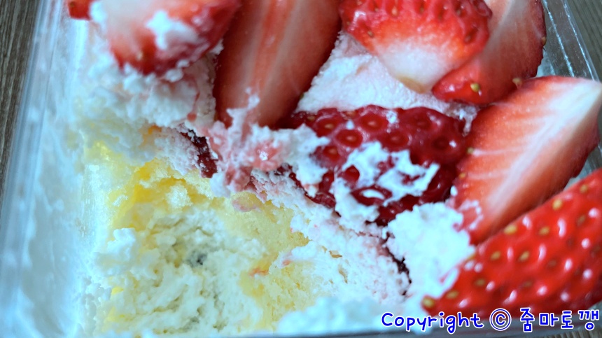그 위에 또 생크림,그다음 딸기인데요