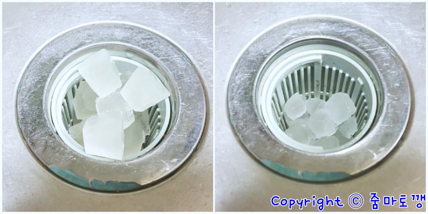 식초얼음을 배수구통에 넣고