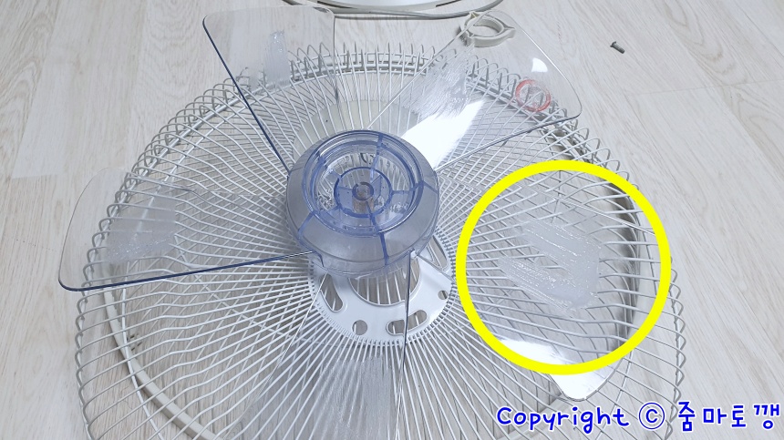 선풍기 앞망을 분리해주시고요