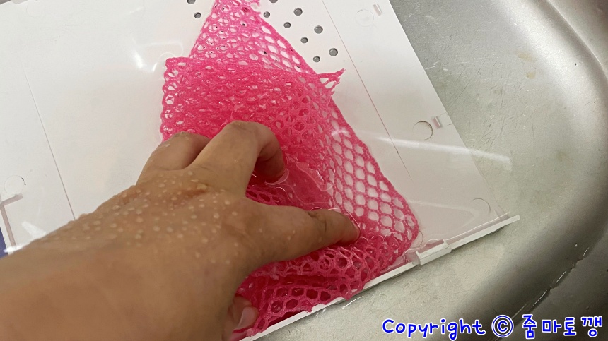 수세미로 닦아줍니다