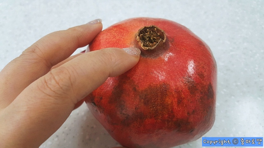 석류껍질 부분을 톡톡 쳐 주세요