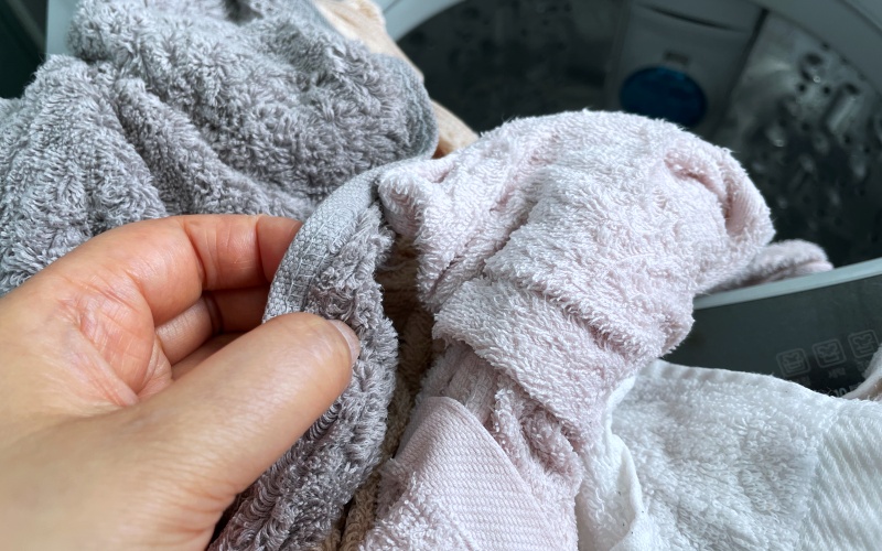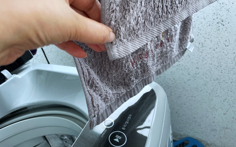 세탁기에 수건을 부어