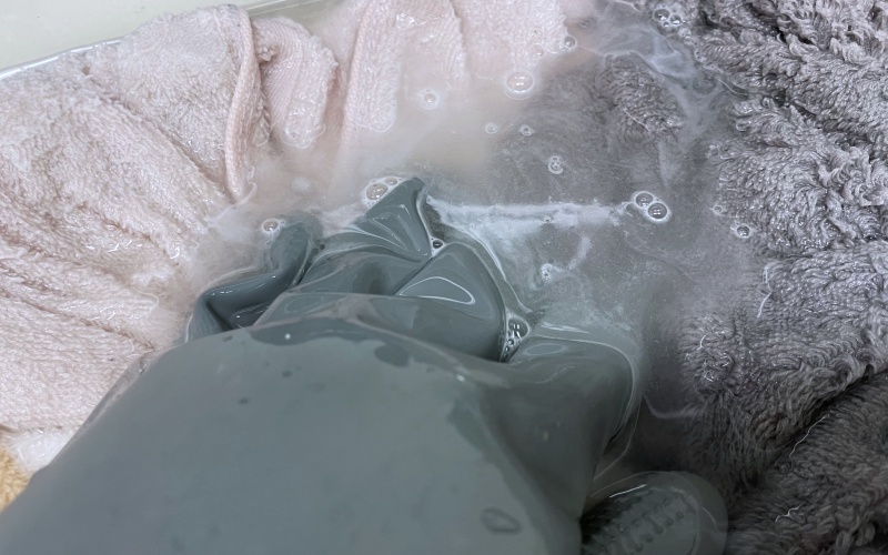고무장갑을 착용하고