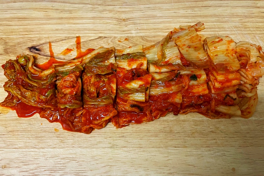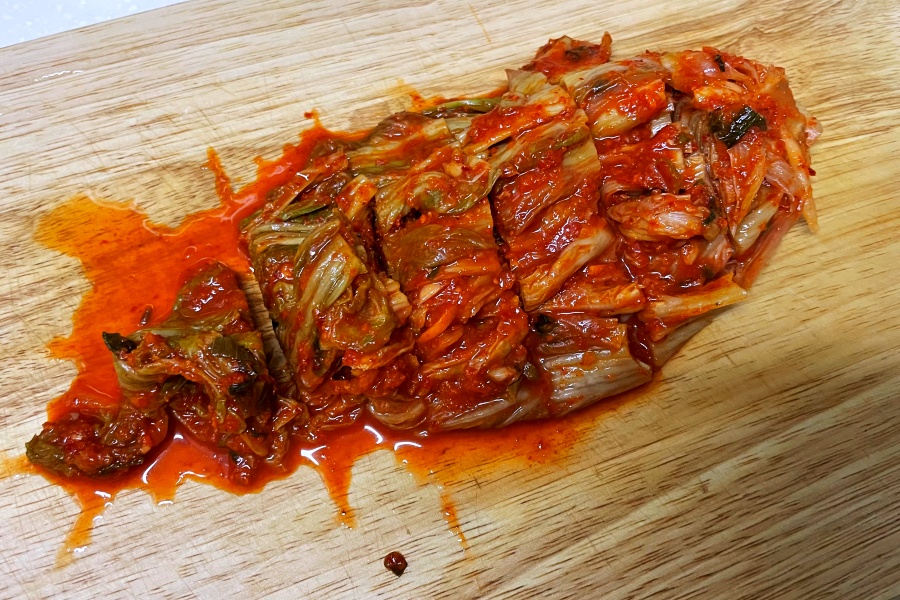 하지만 김치를 썰기 전