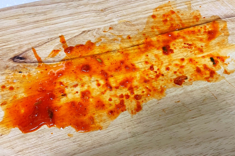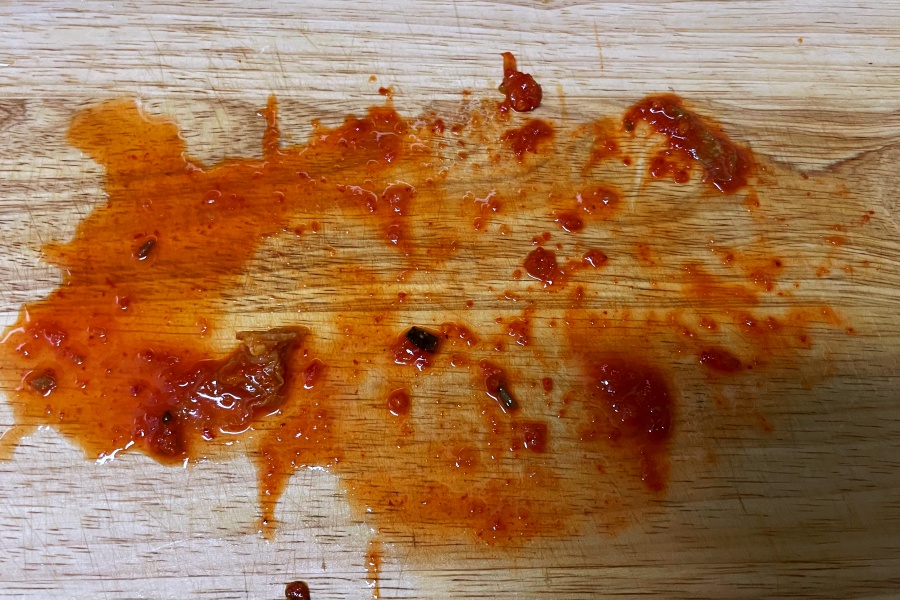 김칫국물 빨갛게 베여