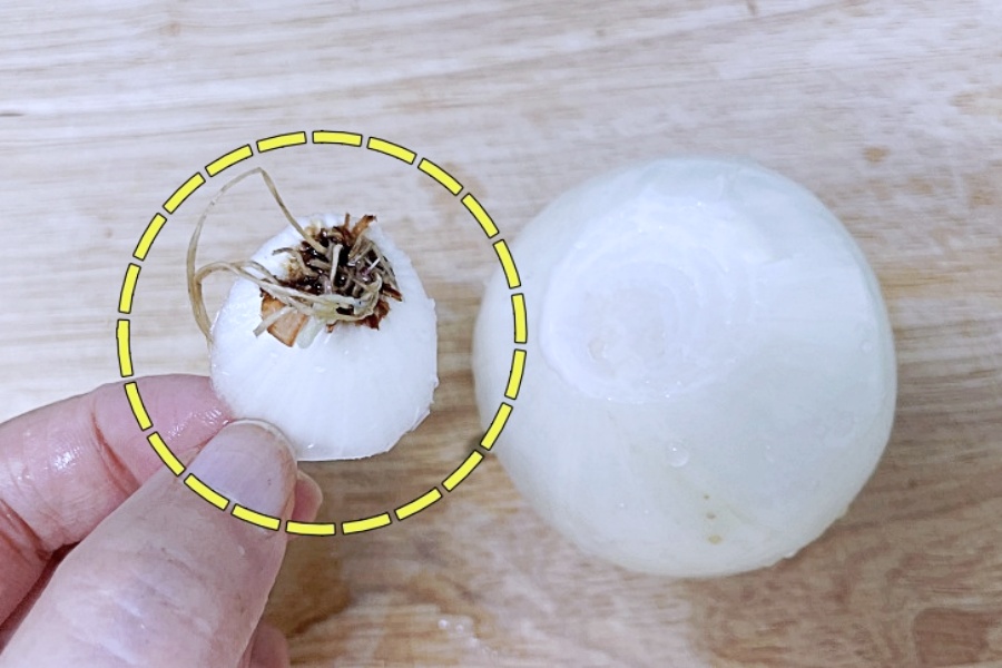 양파 뿌리를 나중에 자르세요