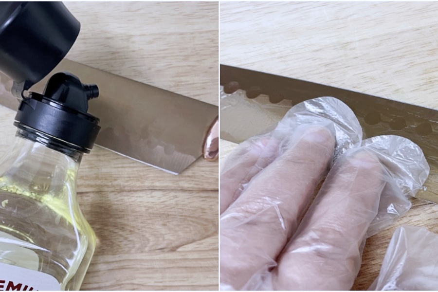식용유를 약간 묻혀 썰어보세요