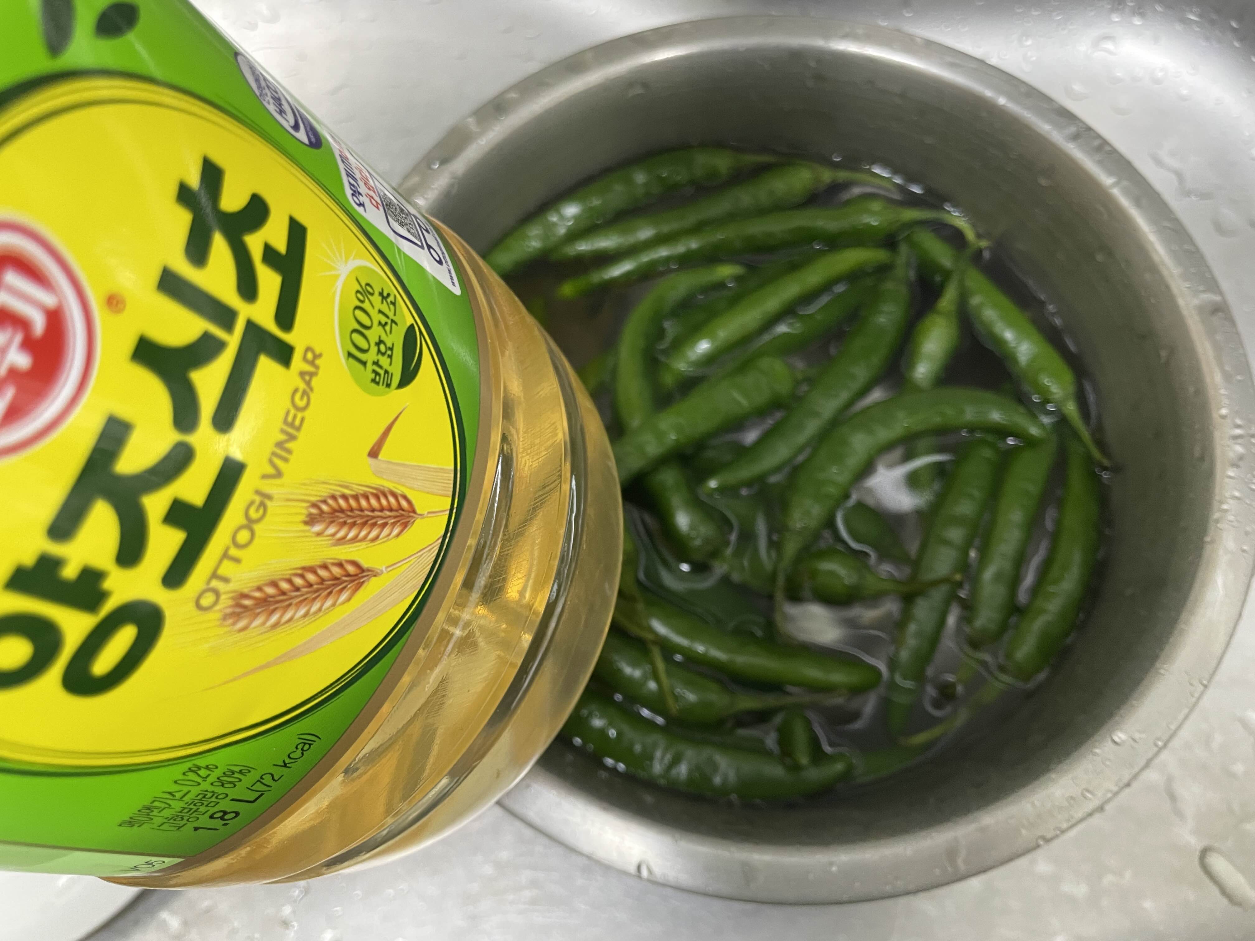식초물에 5분 정도 담가두세요