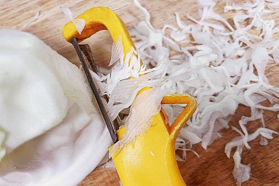 양배추를 잡고 감자칼로